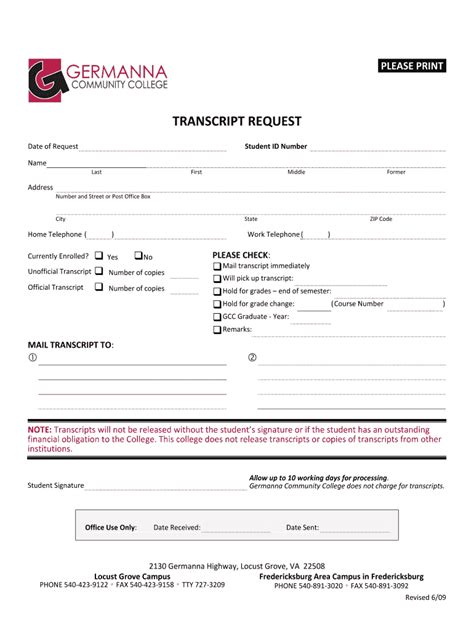 Germanna Community College Transcript Request - If you have not attended germanna in the past three years and you have forgotten your germanna student id number, please include your social. To request a transcript you must login or register by creating a new learner account. How do i request an official transcript? Germanna community college has partnered with parchment inc. Complete the requested form information, date.